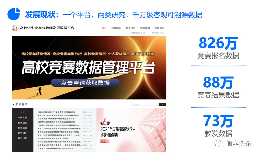 当然,对于各高校竞赛主管单位来说,除了竞赛数据查询的需求外,对实现竞赛数据分析,高校竞赛数据的概貌、竞赛画像分析,对标高校竞赛数据对标分析的功能需求甚至更高。
